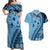 Bula Fiji Couples Matching Off Shoulder Short Dress and Hawaiian Shirt Turquoise Kaivity Masi Tapa LT7