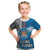 Fiji Australia Rugby Kid T Shirt Kangaroo and Palm Tree Blue Tapa Pattern Mix Aboriginal LT03