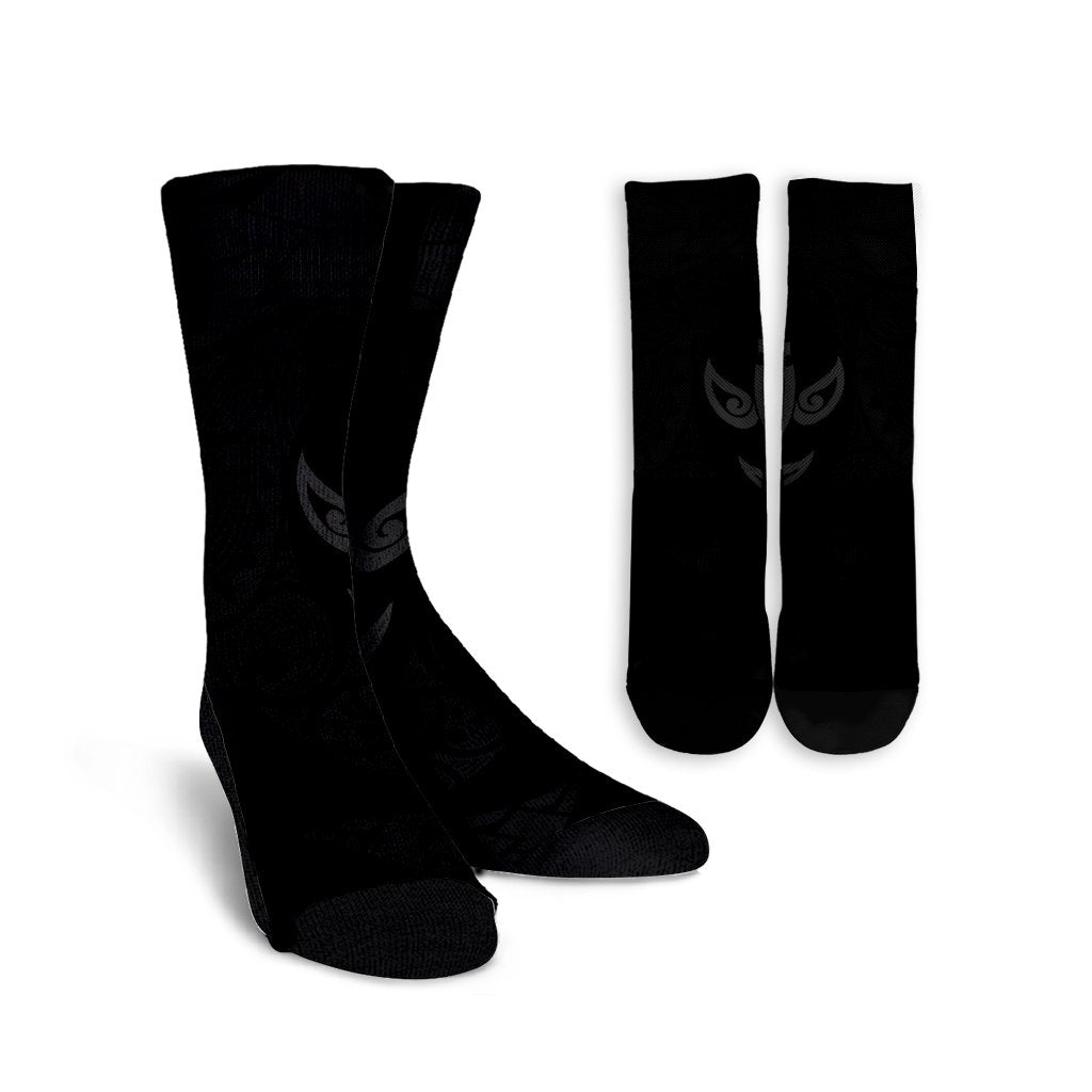 Polynesian Turtle Hammerhead Shark Ray Kanaka Hawaii Crew Socks Circle Grey - AH
