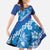 Samoan Culture Kid Short Sleeve Dress Hibiscus and Ula Fala with Tapa Pattern Blue Color LT03
