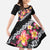 Black Polynesia Kid Short Sleeve Dress Plumeria With Hibiscus Pattern Tropical Vibes LT14