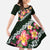 Green Polynesia Kid Short Sleeve Dress Plumeria With Hibiscus Pattern Tropical Vibes LT14