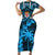 Fakaalofa Lahi Atu Niue Short Sleeve Bodycon Dress Niuean Map With Hiapo Pattern Blue Version LT14