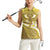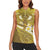 Gold Polynesia Women Sleeveless Polo Shirt Tribal Pattern Tropical Frangipani LT14