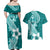 Hafa Adai Guam Couples Matching Off Shoulder Maxi Dress and Hawaiian Shirt Polynesian Floral Teal Pattern LT01
