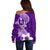 Hafa Adai Guam Off Shoulder Sweater Polynesian Floral Purple Pattern LT01