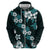 Hawaiian Hibiscus Tribal Floral Teal Zip Hoodie Polynesian Tapa Pattern