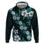 Hawaiian Hibiscus Tribal Floral Teal Zip Hoodie Polynesian Tapa Pattern LT01