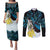 New Zealand Silver Fern Tui Bird Couples Matching Puletasi and Long Sleeve Button Shirt Maori Kowhai Paua Shell Taniko Motifs LT14